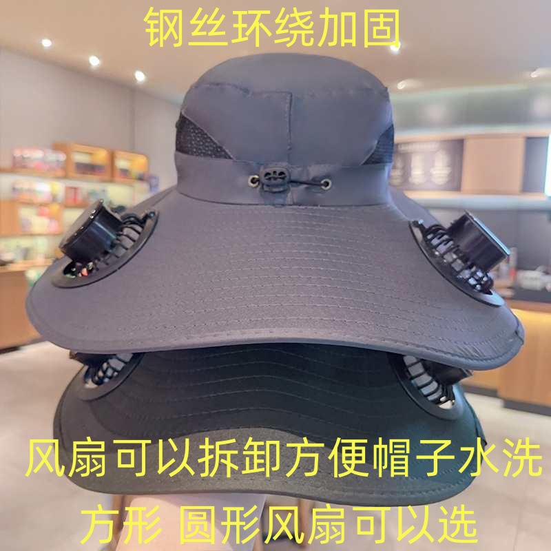 大きなつばの日よけ帽子、男性用の大型充電式帽子、アウトドアキャンプやハイキング、ソーラー充電式ファンフィッシャーマンハット