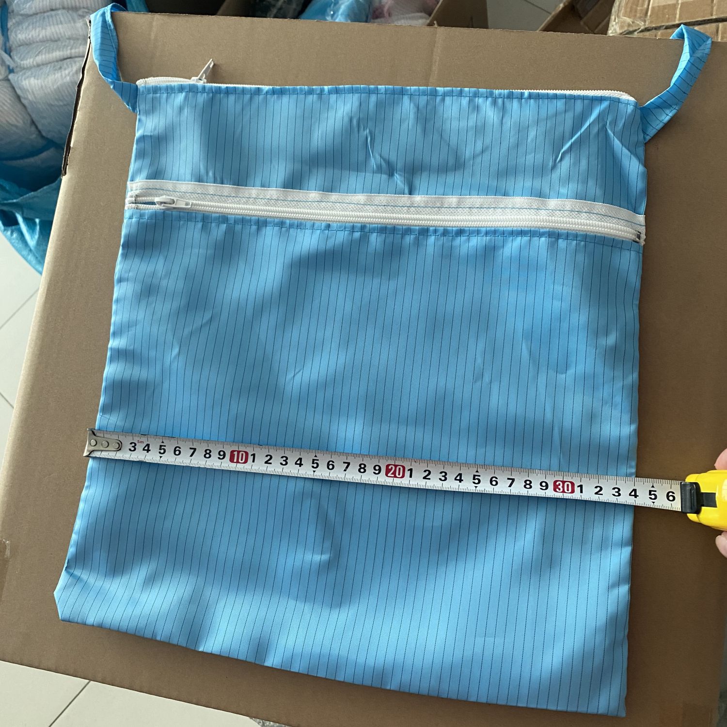 東莞メーカー製 静電気防止 防塵 無塵バッグ ダブルジッパー付き ブルー/ホワイト 収納バッグ 無塵ブックバッグ