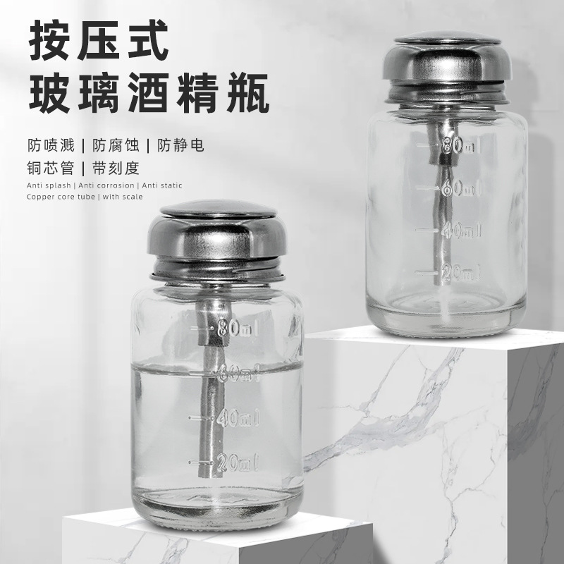 プッシュ式ガラスアルコールボトル腐食防止静電気防止洗浄板ボトル携帯電話修理銅芯透明アルコールボトル