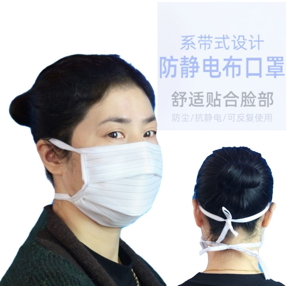 静電気防止マスク白色ストライプ二重層静電気防止通気性バンドマスク