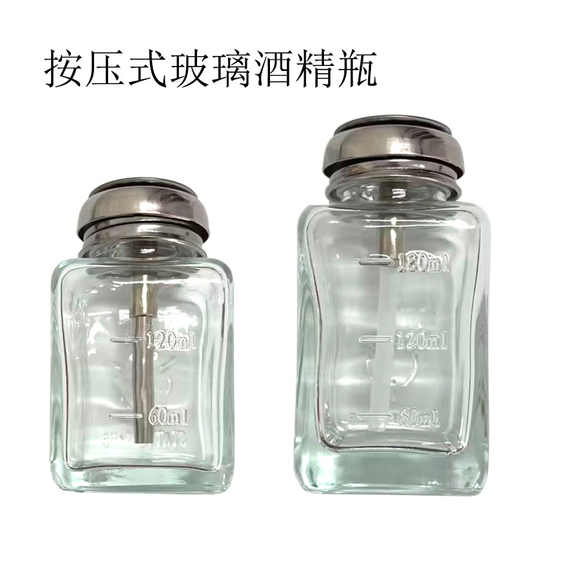 180miガラスアルコールボトルプッシュ式洗板液体ボトル金属ヘッド白電気オイルボトル天那水ボトルアルコールボトル