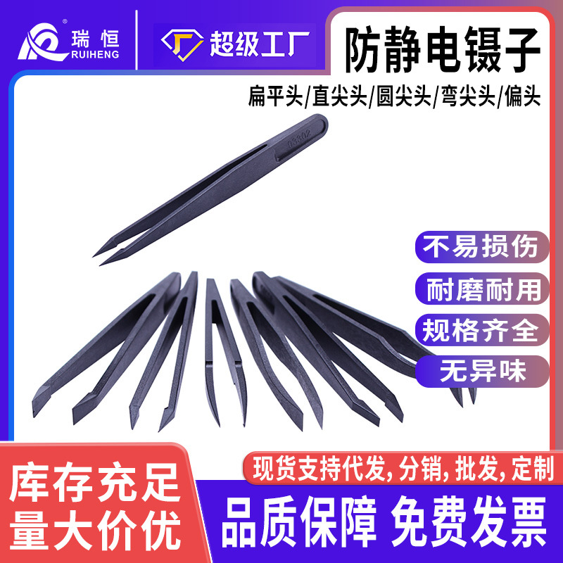 カスタマイズされたメーカー卸売プラスチックピンセット黒先端フラットヘッドエルボプラスチックピンセット東莞瑞恒卸売