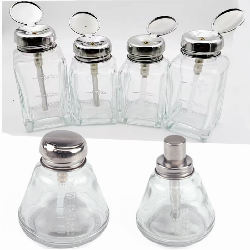 アルコールボトル厚手ガラス瓶180mlプッシュ式工業用修理銅芯洗板水瓶溶剤瓶