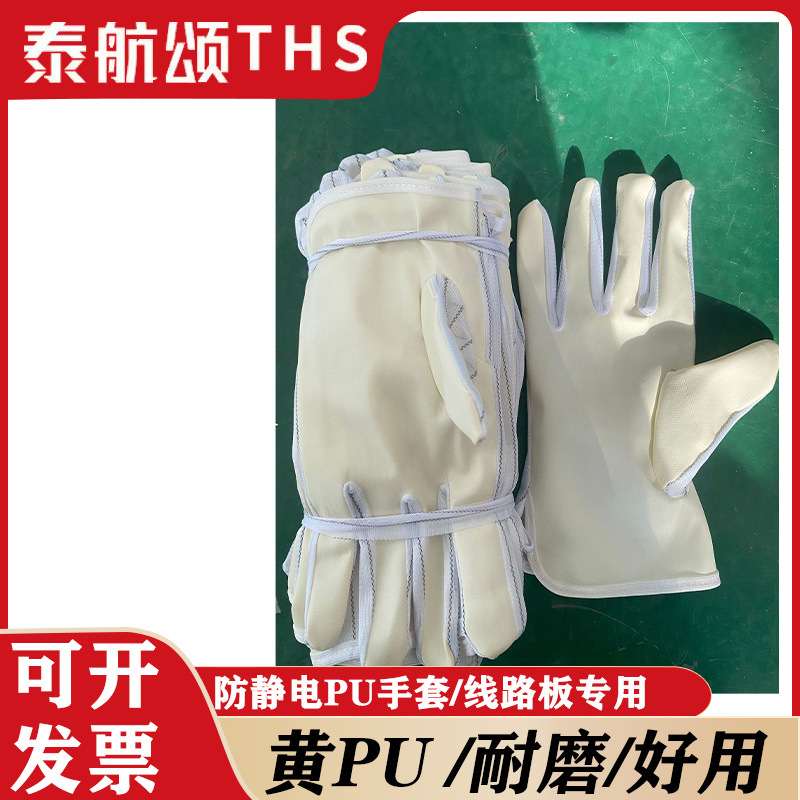 静電気防止手袋、黄色のPU耐摩耗性回路基板、剥がれにくい特別な手袋を在庫しています