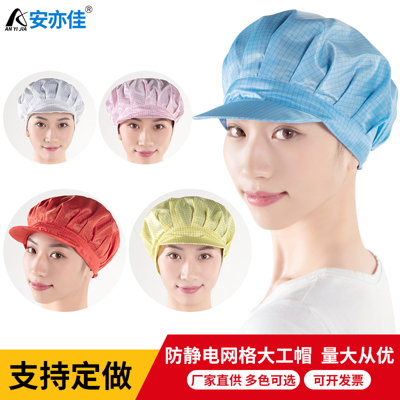 静電気防止メッシュ大工帽クリーン工場食品工場防護男女静電気防止服帽子静電気防止作業帽