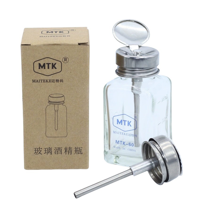 180mIガラスアルコールボトルプッシュ式洗板液体ボトル金属ヘッド白電気オイルボトル天那水ボトルアルコールボトル
