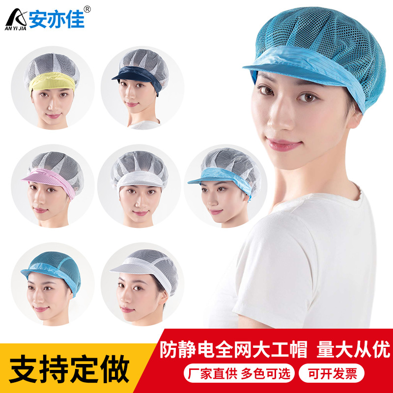 ネット帽女性作業帽静電気防止防塵ネット帽作業場防塵鴨舌ネット帽防護通気大工帽