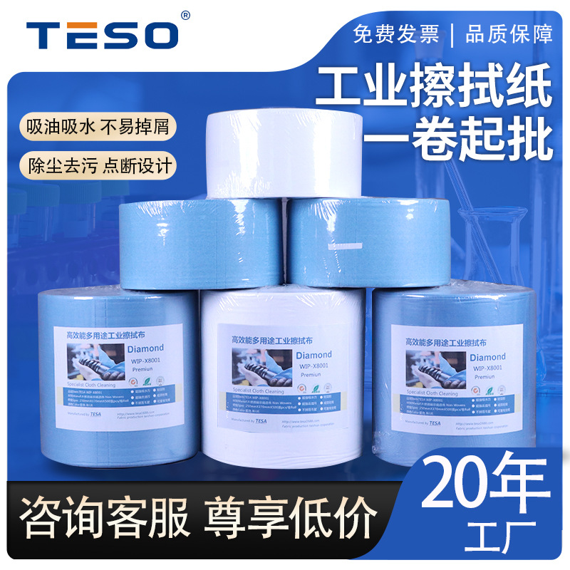 恩莱詩クリーンペーパー工業拭き取り紙青色白色工業用除塵大巻吸水吸油紙不織布