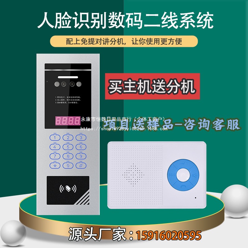 非可视数码楼宇对讲门禁系统人脸识别开门买主机送分机银色浅灰色