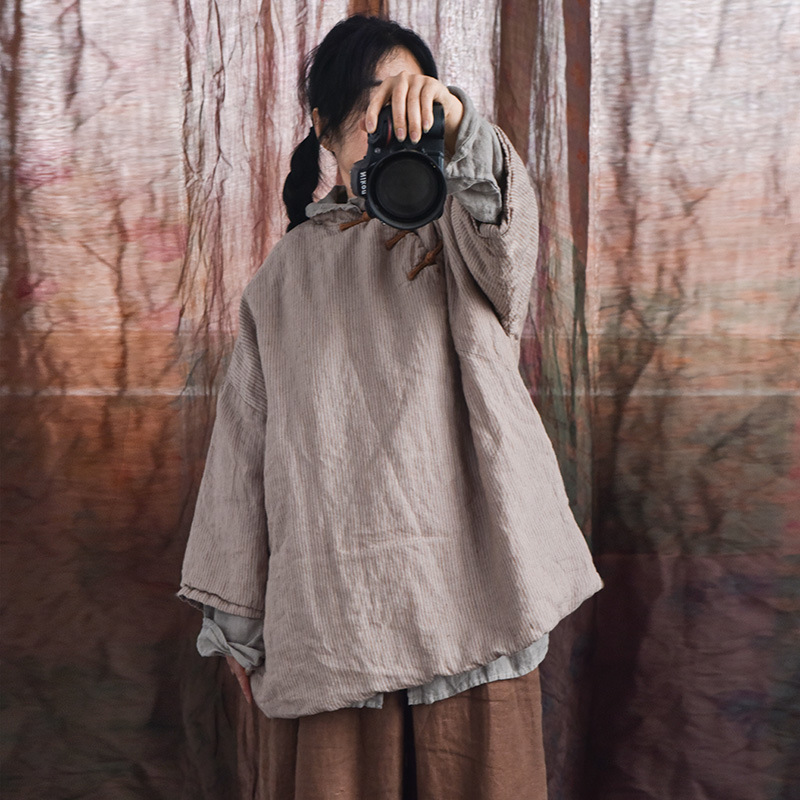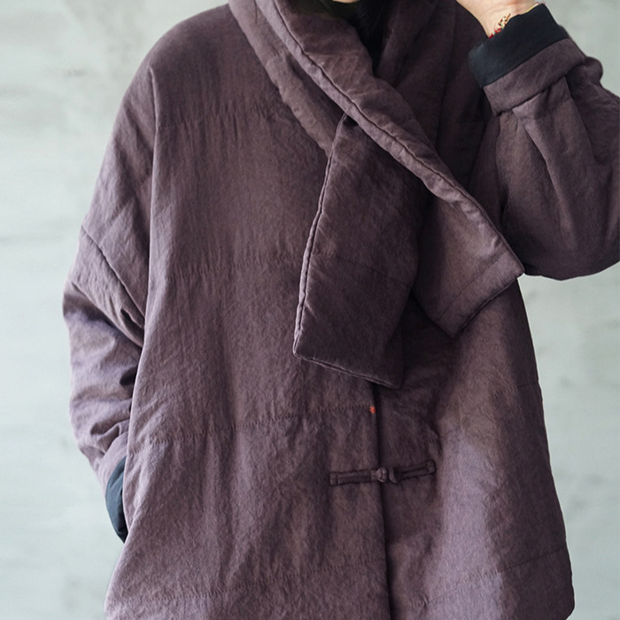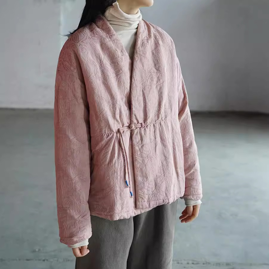 25冬綿麻婦人服新作麻絞り染めテクスチャーミドル丈中綿入り厚手綿ローブ婦人綿服綿衣