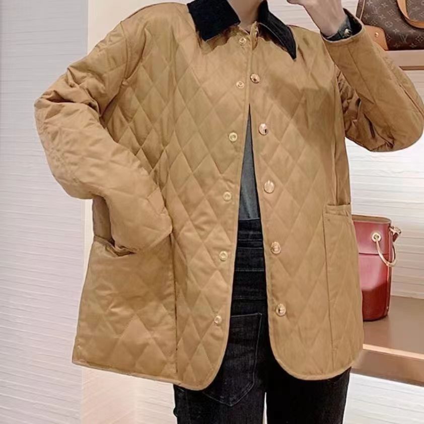 2024年春秋英倫風経典黄金甲綿服女性灯芯絨毛菱形格百合高級綿服コート