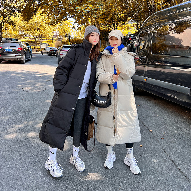 女性用ダウンコットンジャケットの実物ショット、ミドル丈、2025冬韓国版、新しい厚手のコットンジャケット、ゆったりとしたコットンジャケット、膝丈ジャケット