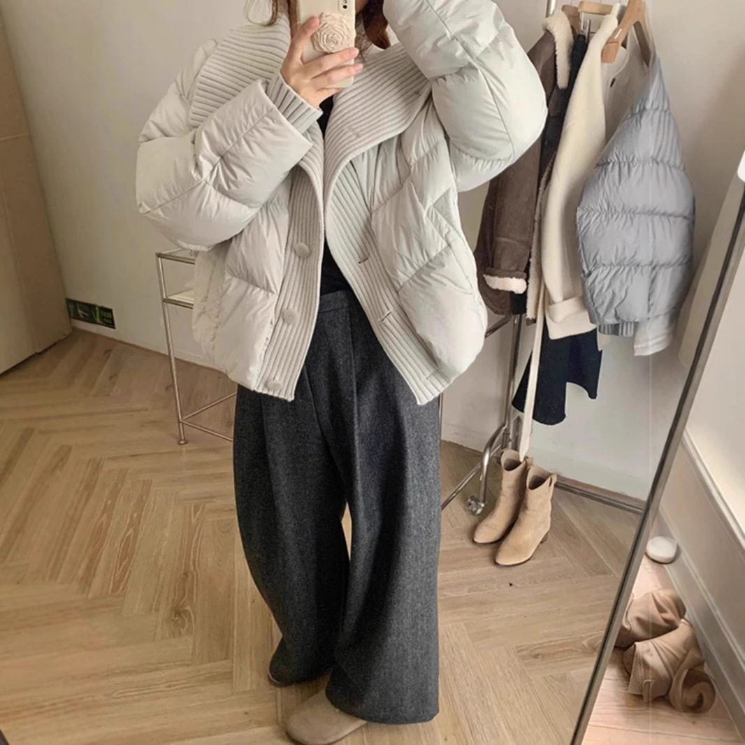 大爆発!レトロな菱形ラペルウエスト軽量ショートダウンジャケット女性用秋冬