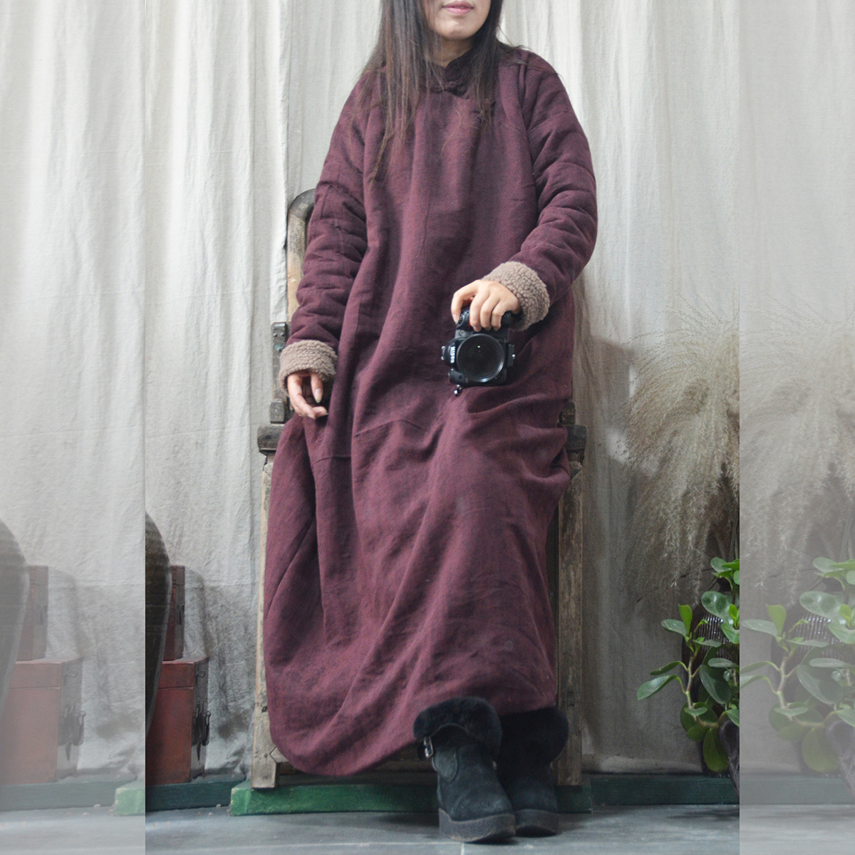 W20my03綿麻亜麻盤ボタン綿服中長タイプ中国風レトロ婦人服刺繍冬厚手コート