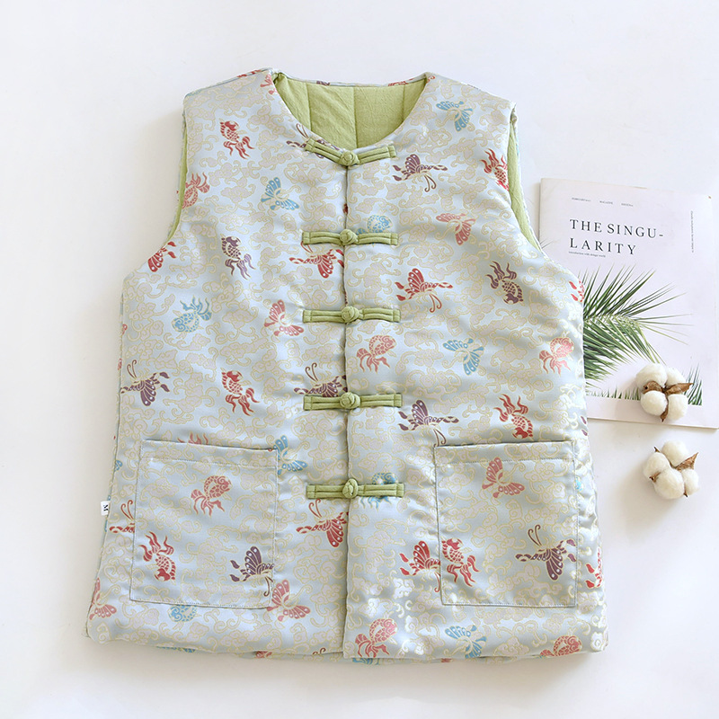 純新疆綿綿綿純手作りの新型保温馬甲は花の肩の文芸ジャカードを厚くして綿を挟む