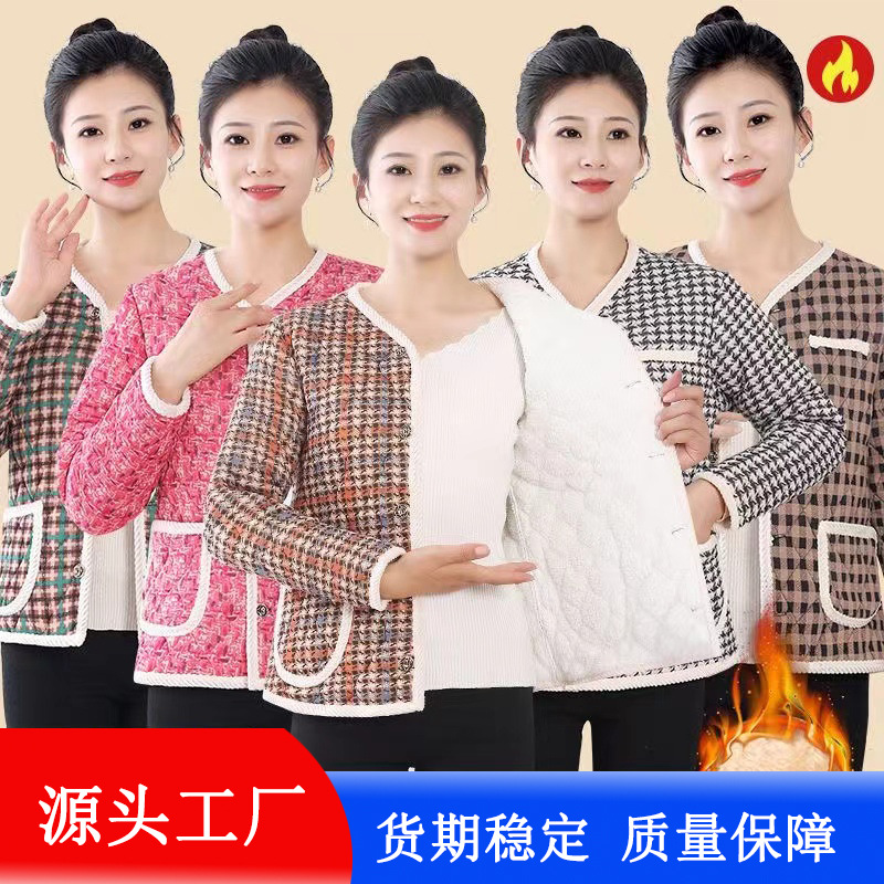40~60代のお母さん向けの冬の新作マザーズウェア、ベルベットの暖かい綿入りコート、おしゃれで多用途、防寒用の小さな香りの良いスタイルの綿入りジャケット