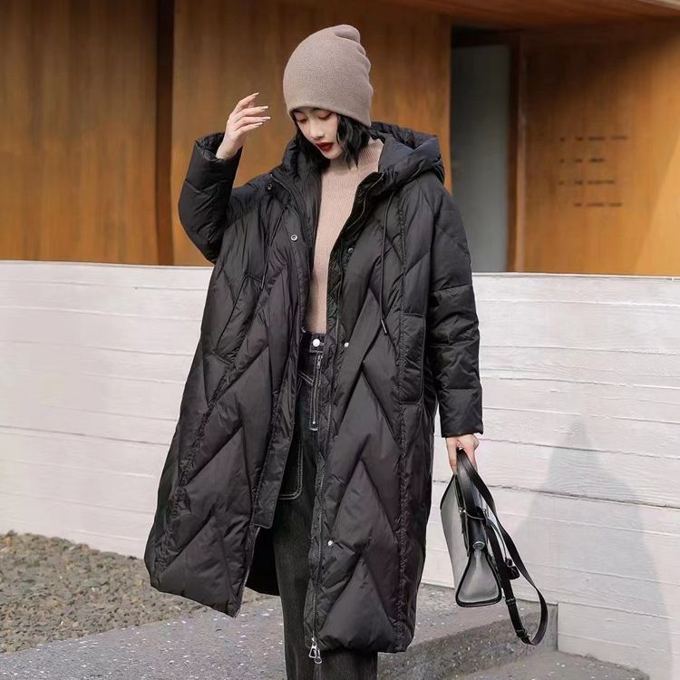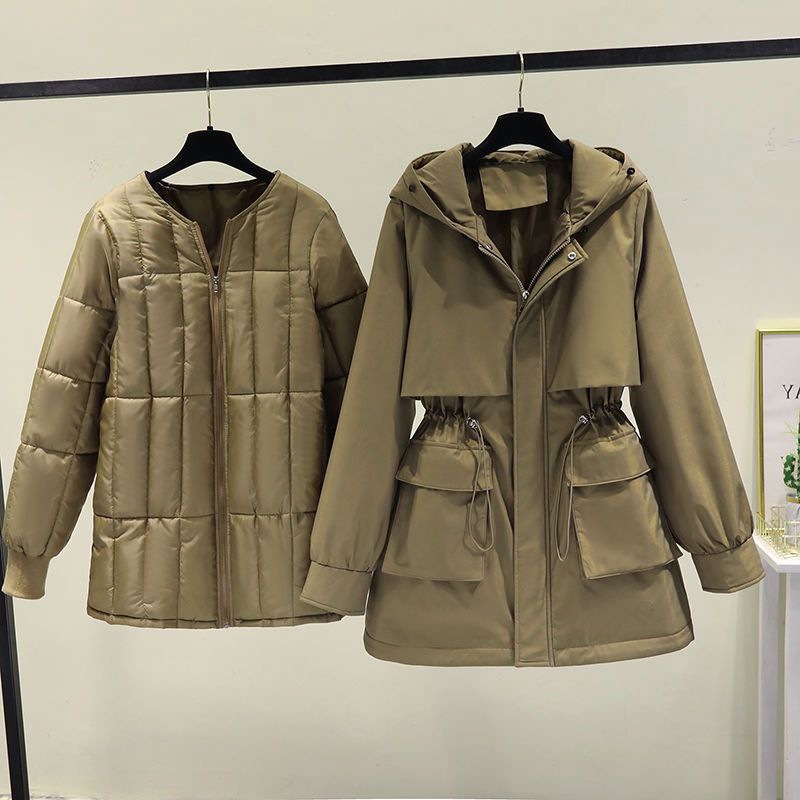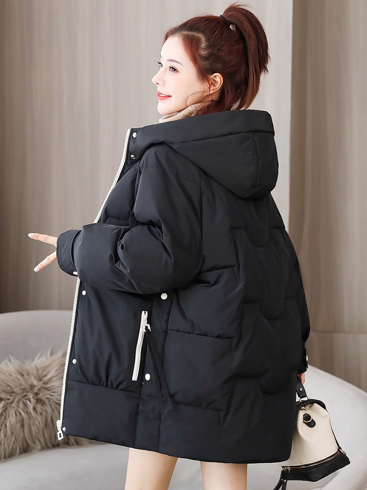 2023韓国版秋冬新作文芸レトロダウン綿服女性ミディアムロングフード付き大きいサイズゆったりシンプルコート