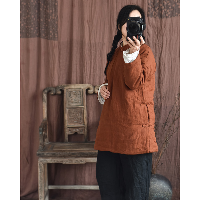 竹筠/オリジナルリネン中国式手作業バックル文芸綿服レトロ綿麻綿服ショートコート綿入れの女性