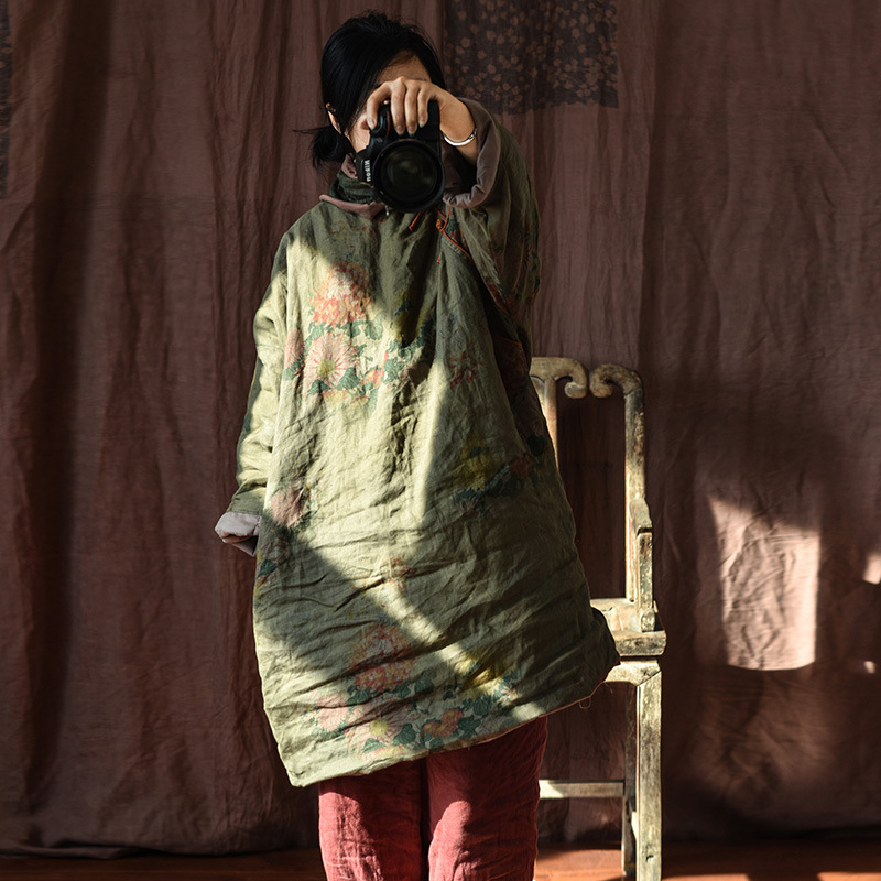 民族風レトロなプリントは綿を挟んで襟を立てます。