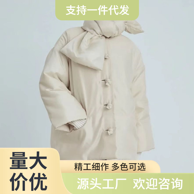 北欧風TOT綿服 秋冬新作 光沢のあるツイストボタン ゆったりスカーフ襟 中綿入りジャケット レディーストップス