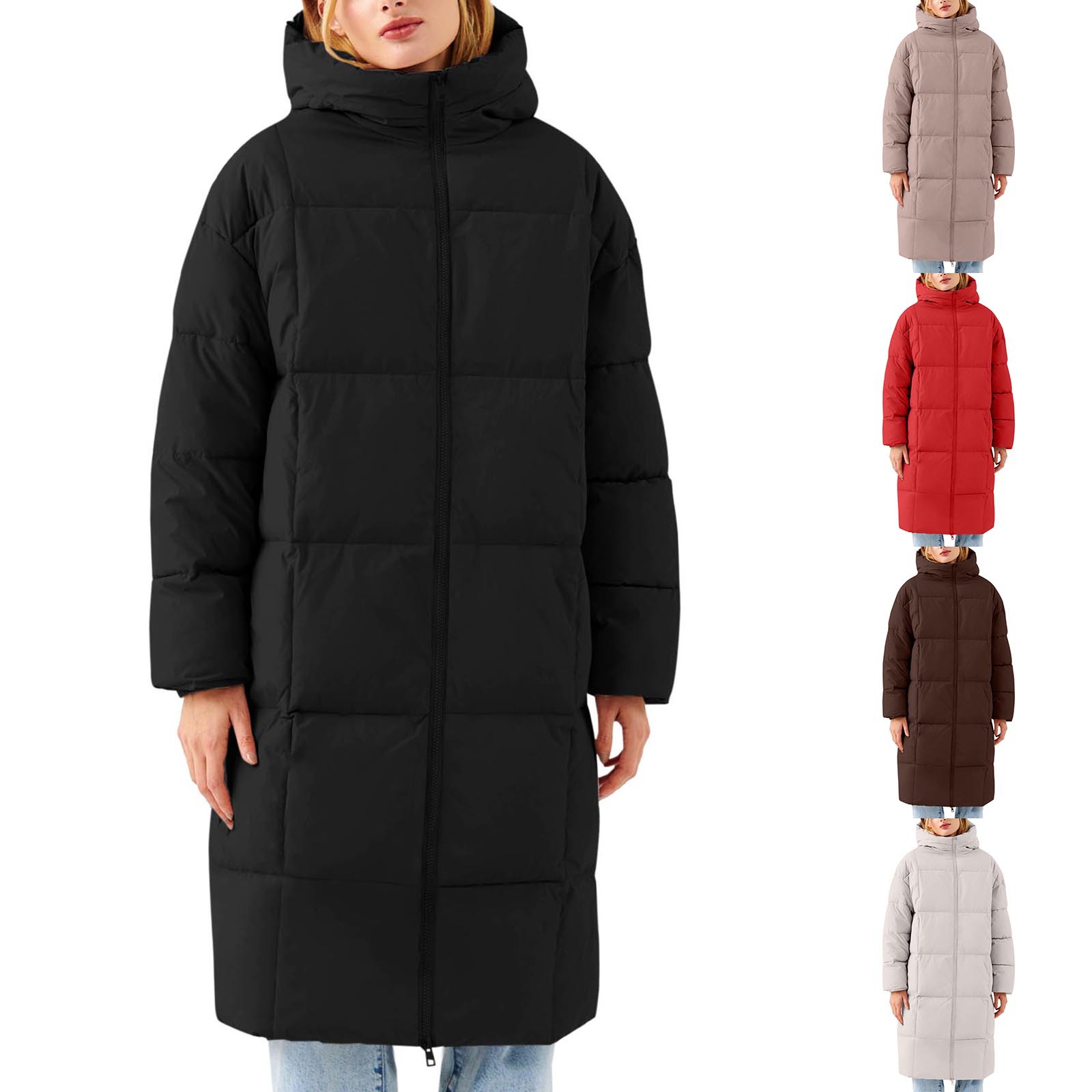 2024秋冬の新型の中の長さは厚くて大きいサイズのファッションのカジュアルな帽子の純色の綿の服のコートの女性を昇格させます。