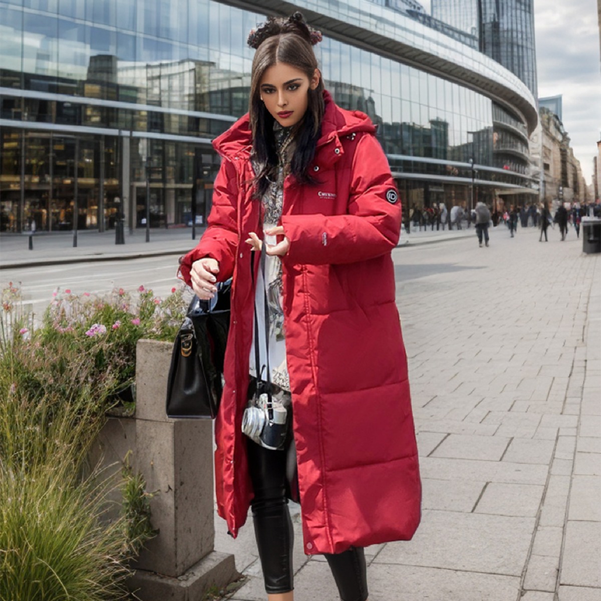 2024年冬の新型綿入れの女性の中の長さは膝を越えて帽子をかぶせて学院の風のコートを厚くしてゆったりしています。