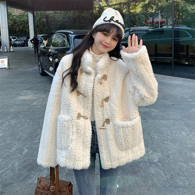 ラムウールの小さな香りのジャケットの女性の秋と冬肥厚2025新しい韓国スタイルのハイエンドホーンボタン小さな綿の服
