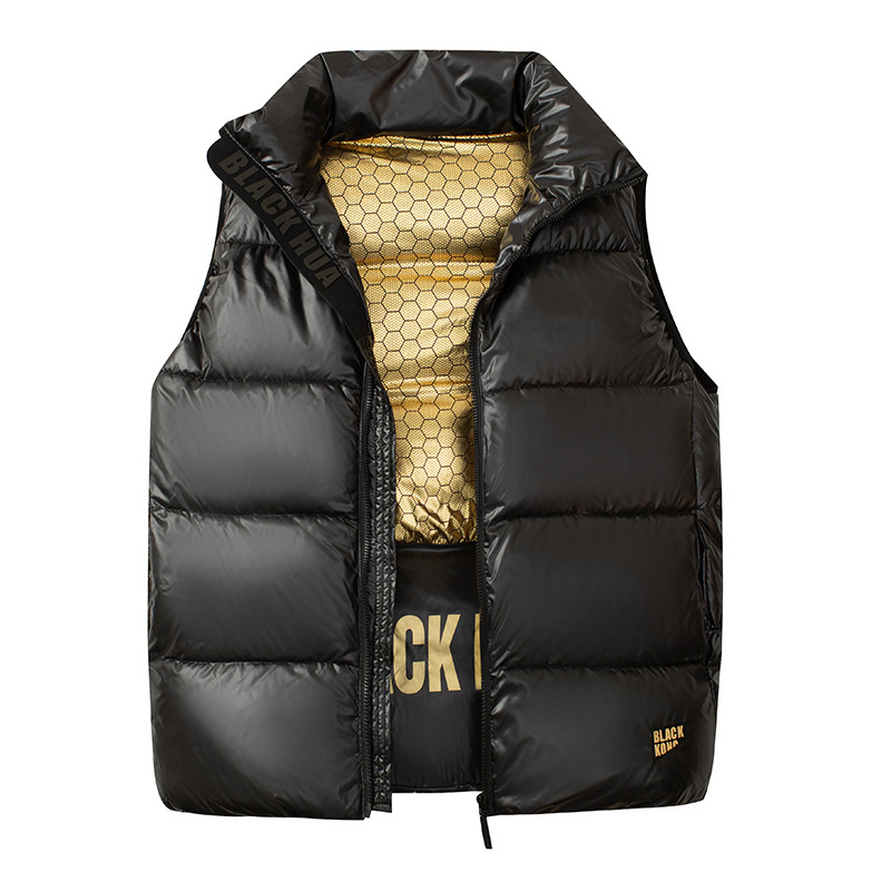 カップルスタイルのブラックゴールドコットンベスト、ルーズピュアブラックベスト、洗濯不要ジャケット、カジュアルで多用途、新しいスタンドカラージッパー