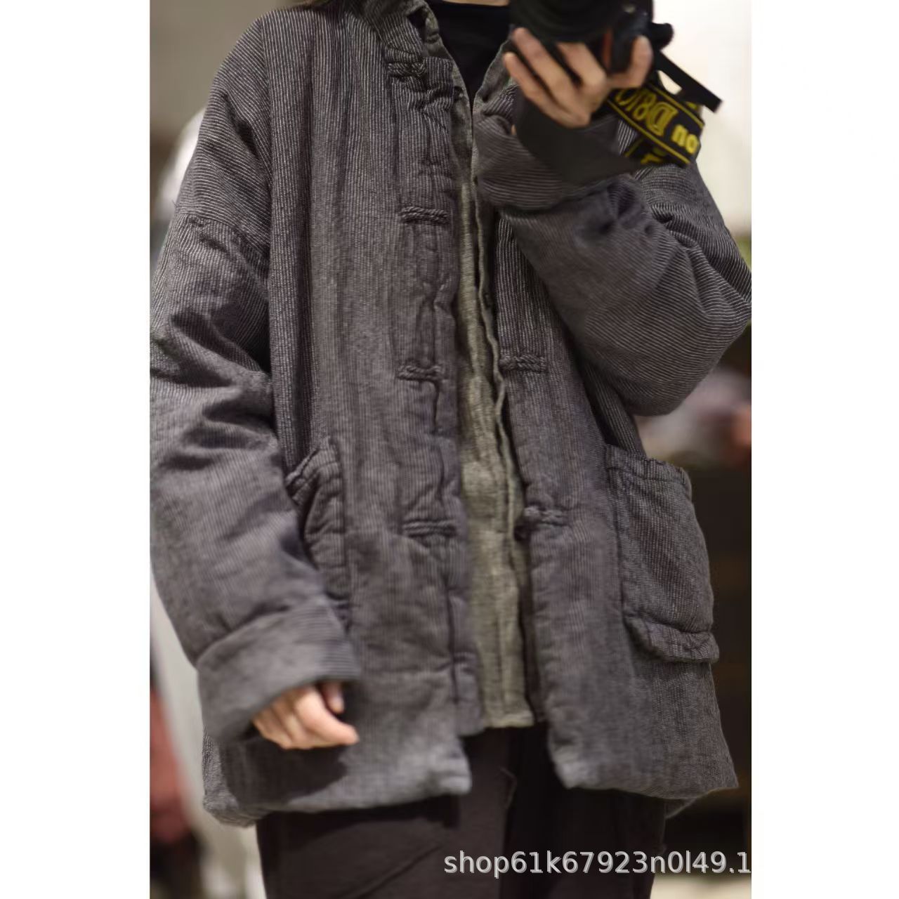 22/10路地の文芸復古冬の色織亜麻のゆったりとした綿の皿を挟んで立襟の綿服を掛けます。
