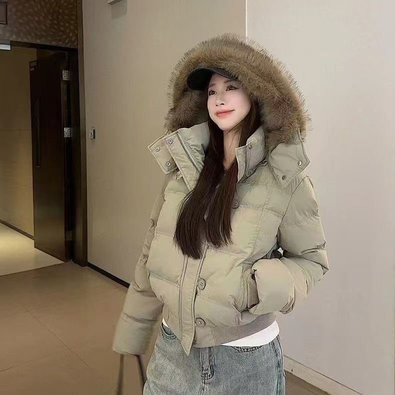 帽子付きの短い綿服の新商品2024冬のファッション的なゆるい綿服の立襟は保温コートの綿入れの大きいサイズを厚くします。