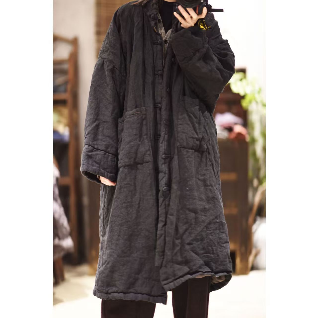 21/12応生冬亜麻文芸復古対襟盤ボタン立襟綿を挟んで肩に落ちた綿服