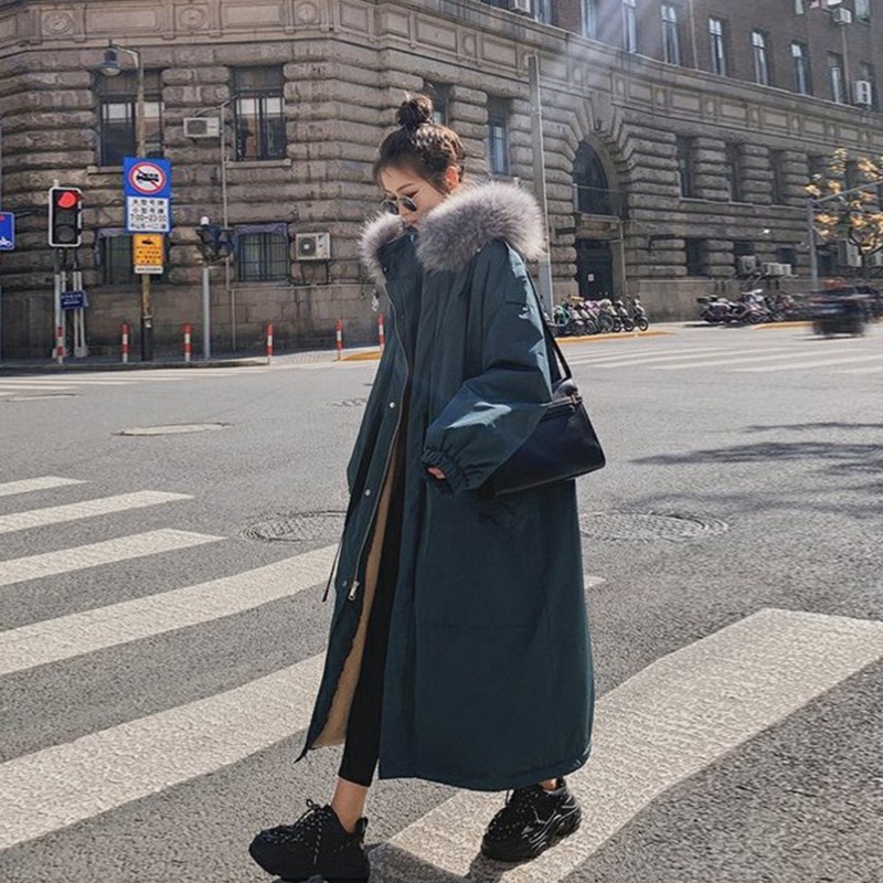 韓国版の外国貿易の厚いパンの服のダウンの綿服の女性のゆったりした冬のコートの中の長いタイプの膝の綿入れの上着