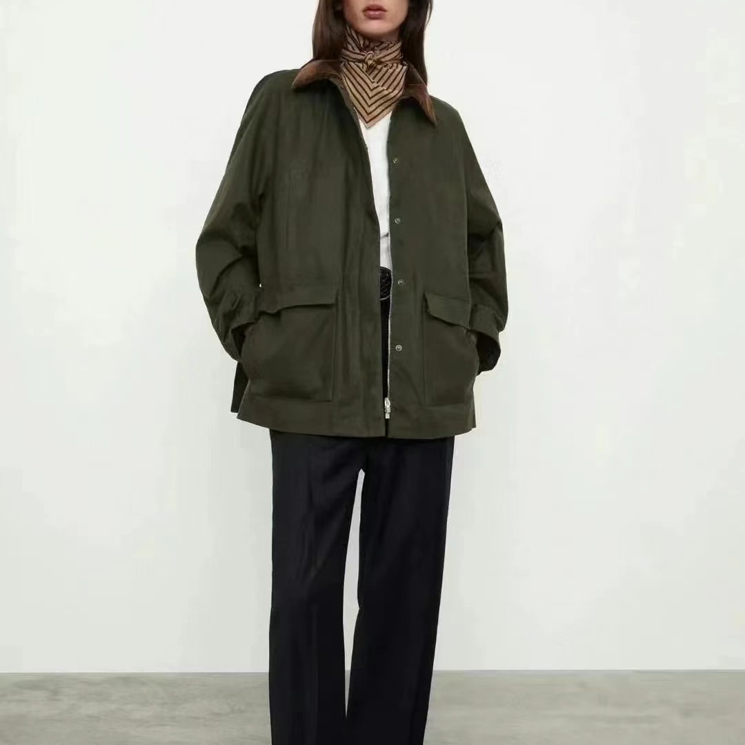 UC & ZAクロスボーダーアマゾン欧米女装立襟ゆったりとした保温コーデュロイ短綿服1150262