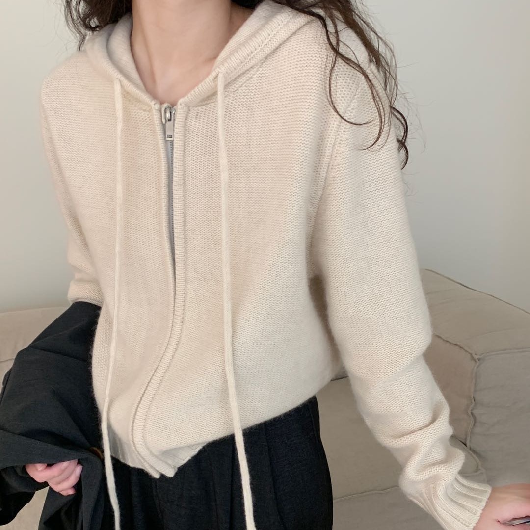 ゆったりとした帽子のパーカー服の女性の中の長さは2023秋冬の新型の韓国版で痩せています。