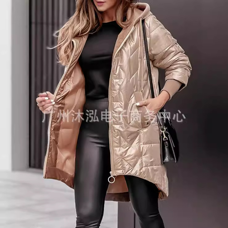 ヨーロッパとアメリカの貿易 2025 新しい綿の服女性のミッドレングスのフード付き綿の服厚く痩身綿のジャケットハイエンドのジャケット