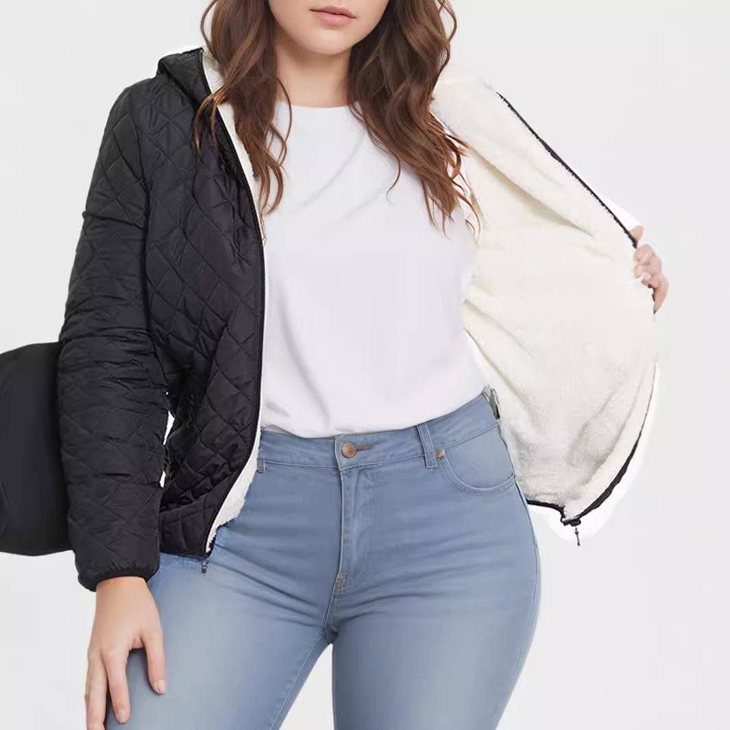 クロスボーダー女装秋冬女装保温帽子とベルベットのキルティング綿の純色コートの子羊のベルベットのゆるい女性の綿服
