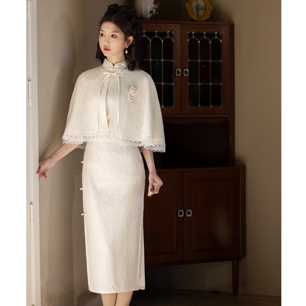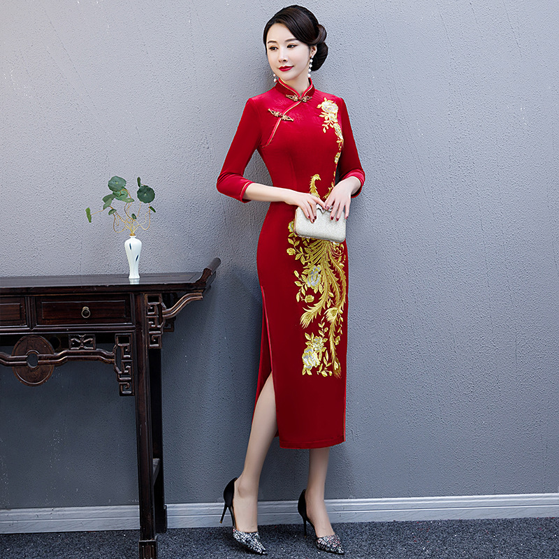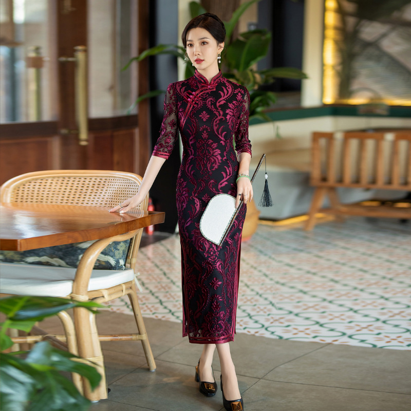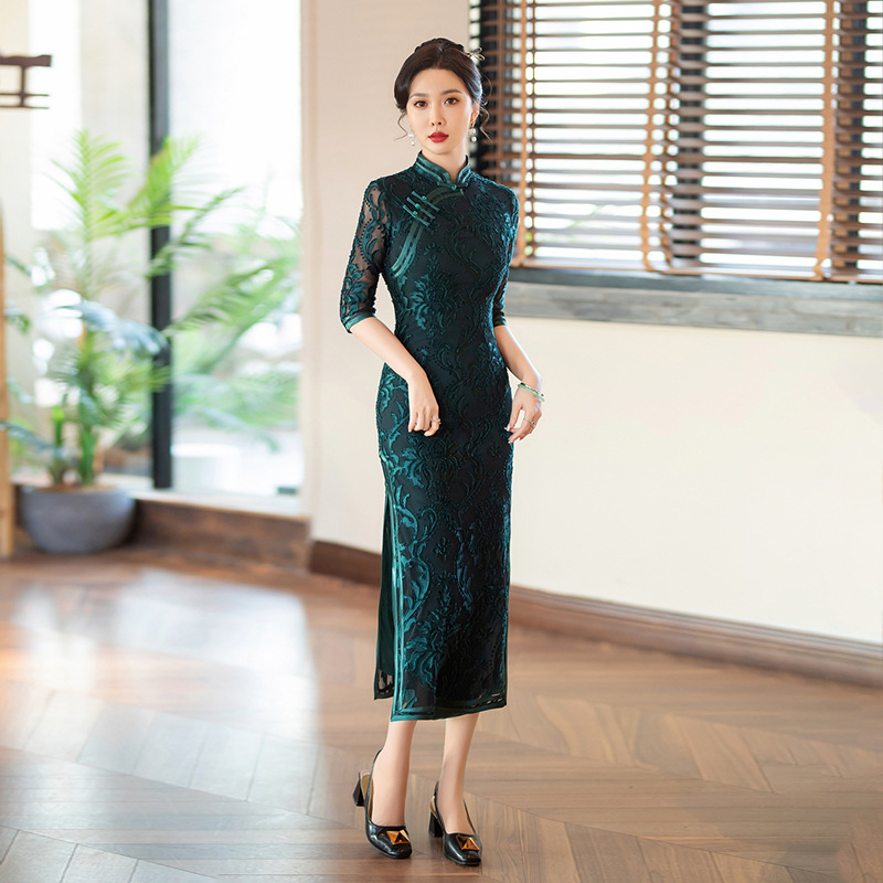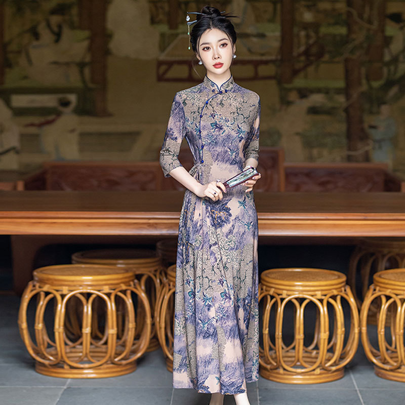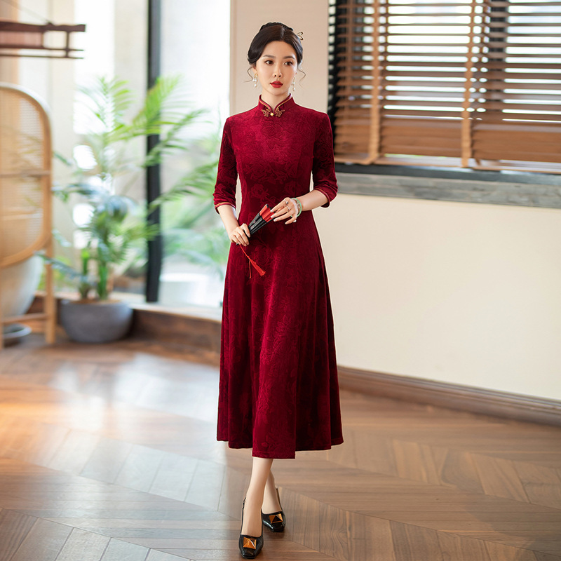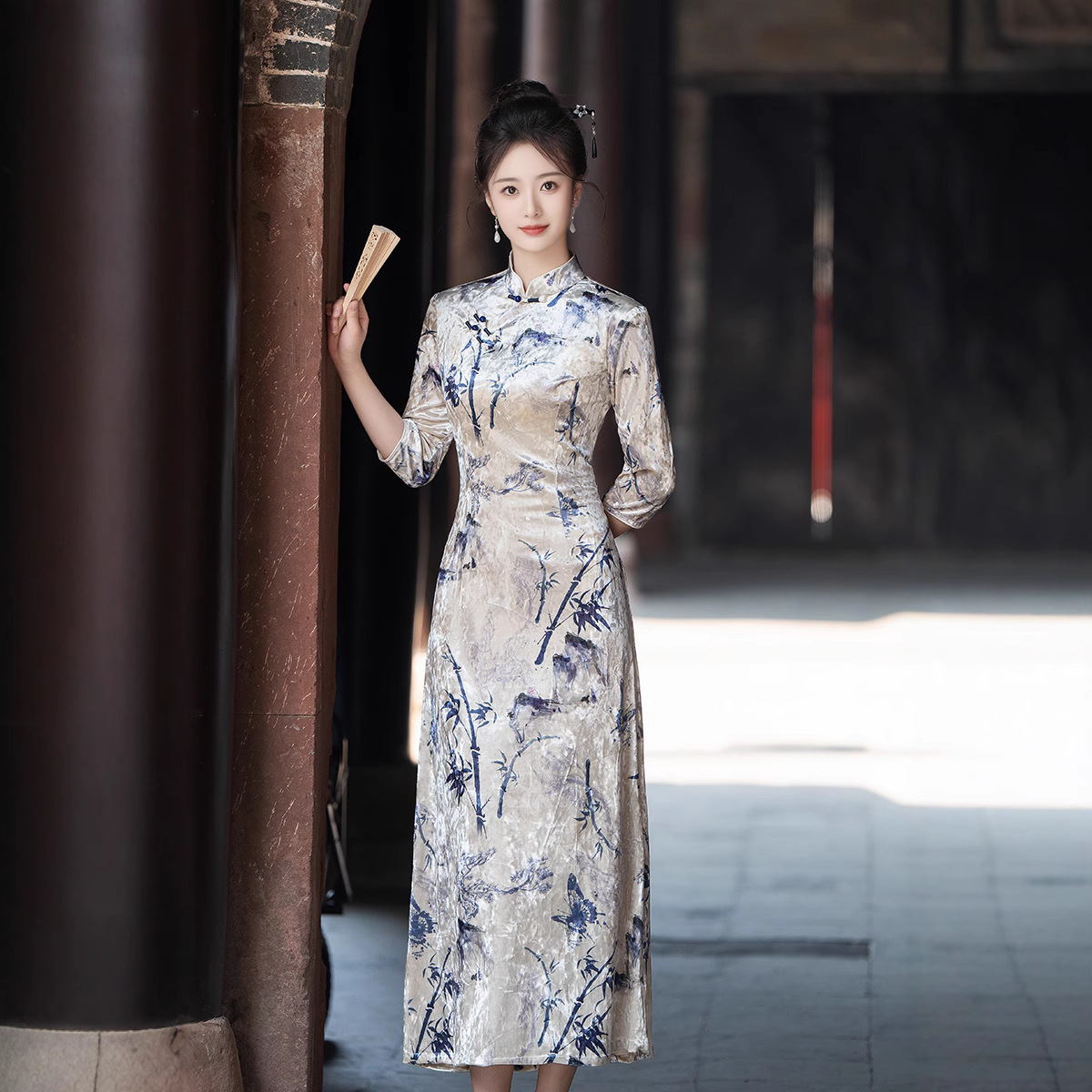 高級チャイナドレス高級感ドレス民国風長型ママチャイナドレス女子春秋モデル復古修身2024年新