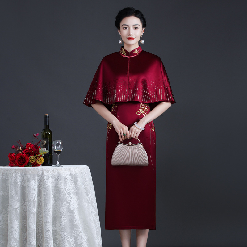 赤いチャイナドレス女性 2025 新しい改良された若い義母小さな母親のドレス結婚式の宴会ハイエンドのウェディングドレス