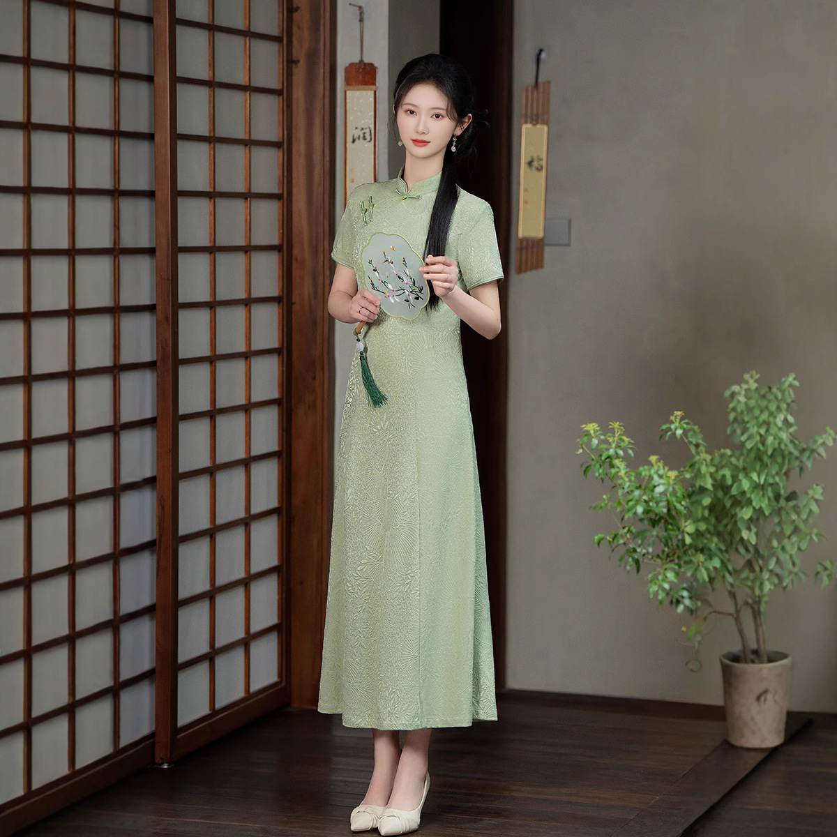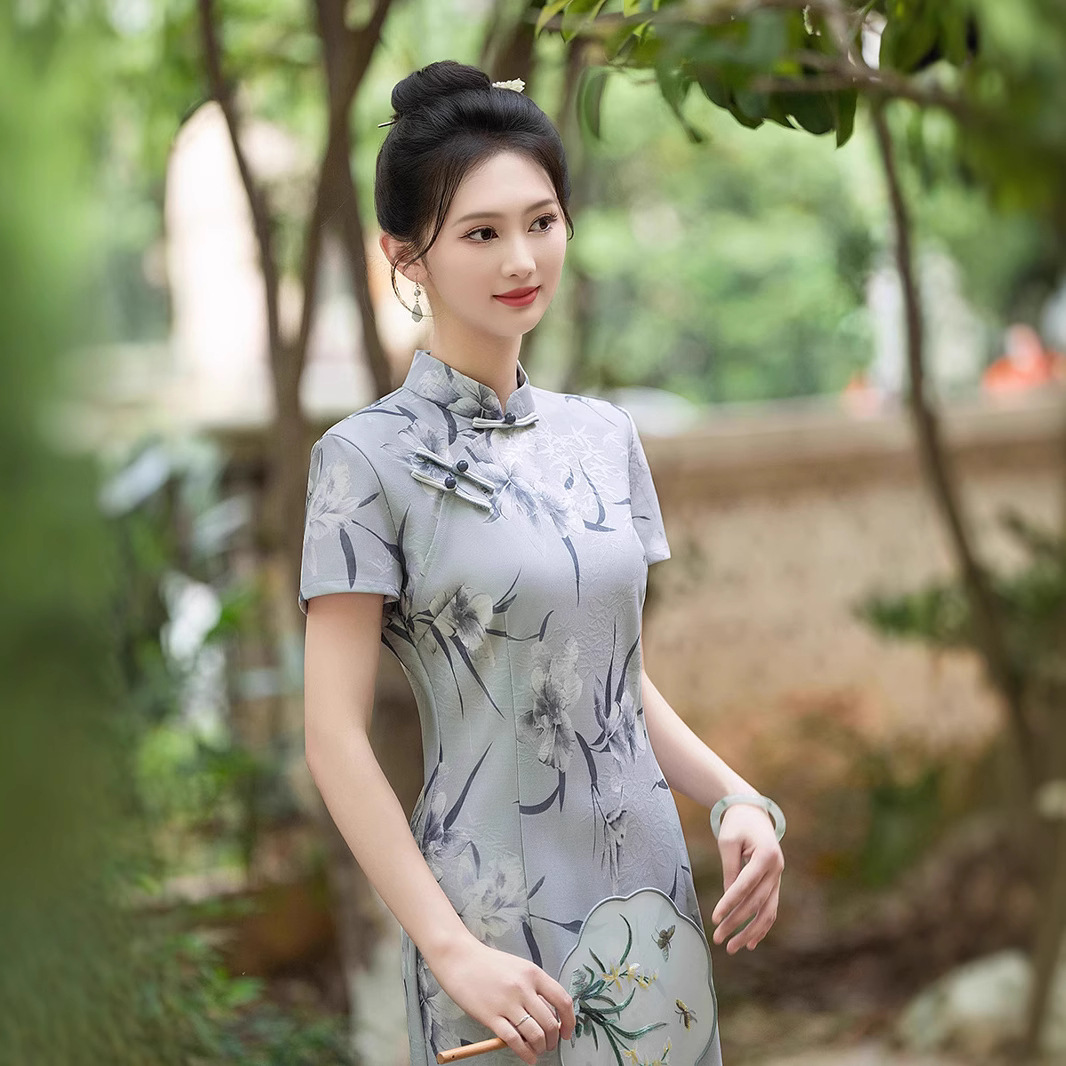 新しい国民風のエレガントなチャイナドレス、新しい中国風のチャイナドレス、改良されたライトカラーチャイナドレス、若々しいスタイルの日常着ドレス