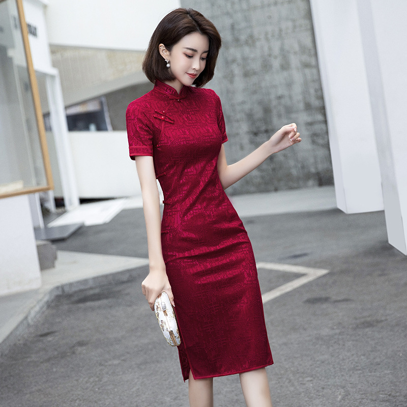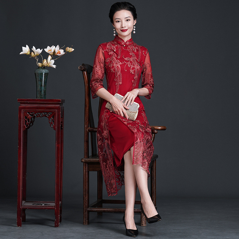 赤いチャイナドレス2024年新型レトロ中年母七分袖チャイナドレス女春夏新中国式新中国式