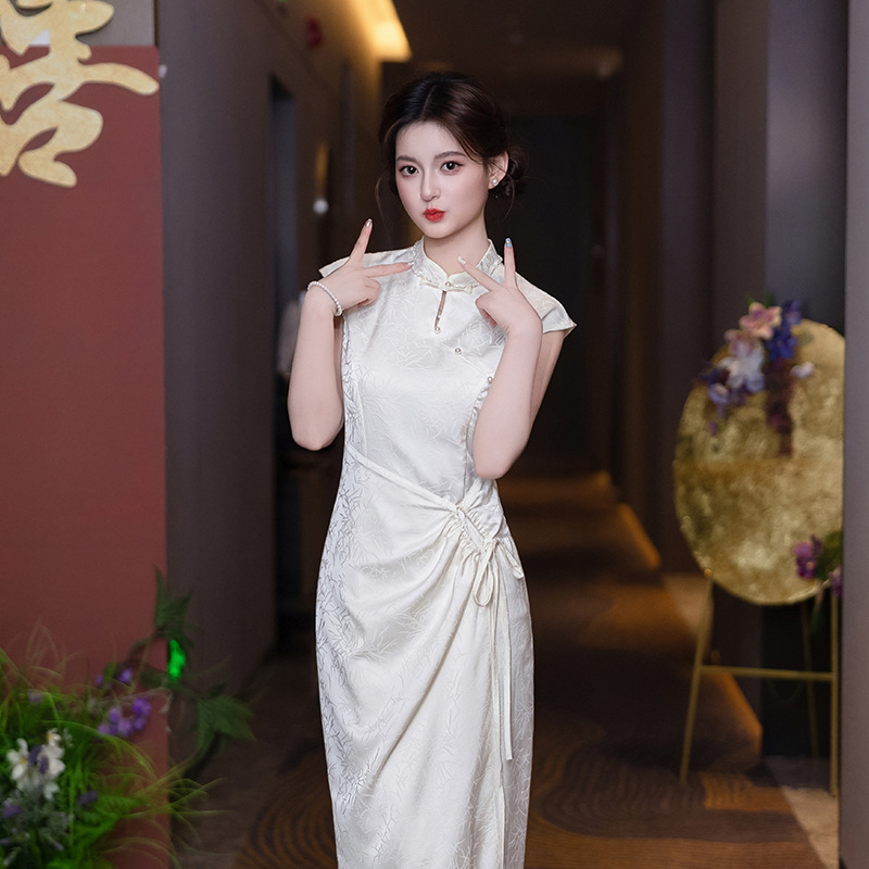 2025 新しい中国風の美しいジャカードチャイナドレス白い花嫁の結婚式の婚約宴会ハイエンドドレスは日常着として着用できます