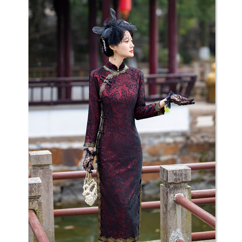 高級チャイナドレス新中国式秋女2024新日常復古改良国風ワンピース若い気質ロングタイプ