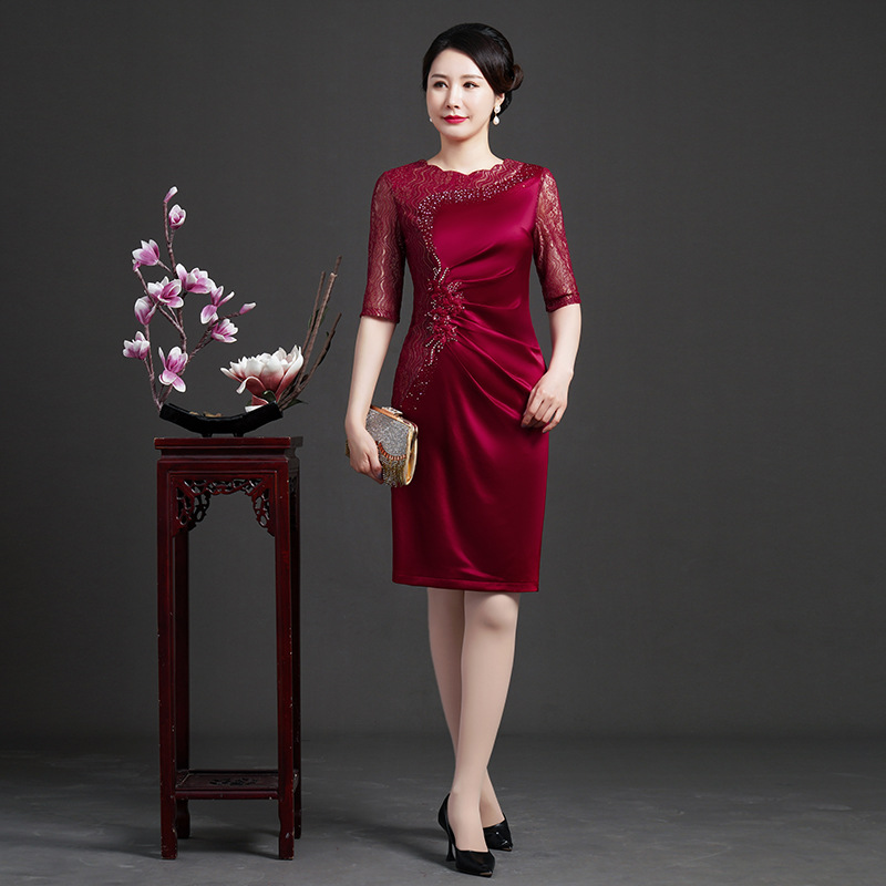 結婚式の母の結婚披露宴のドレス2024の新型の若い妻のチャイナドレスの気質は気高いです。