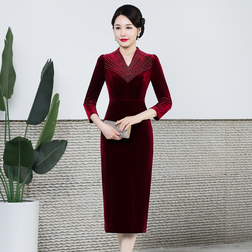 喜婆婆の結婚式披露宴衣装2025新作お母様ドレス結婚祝い乾杯服新中式ウェディングドレス春用ベルベット