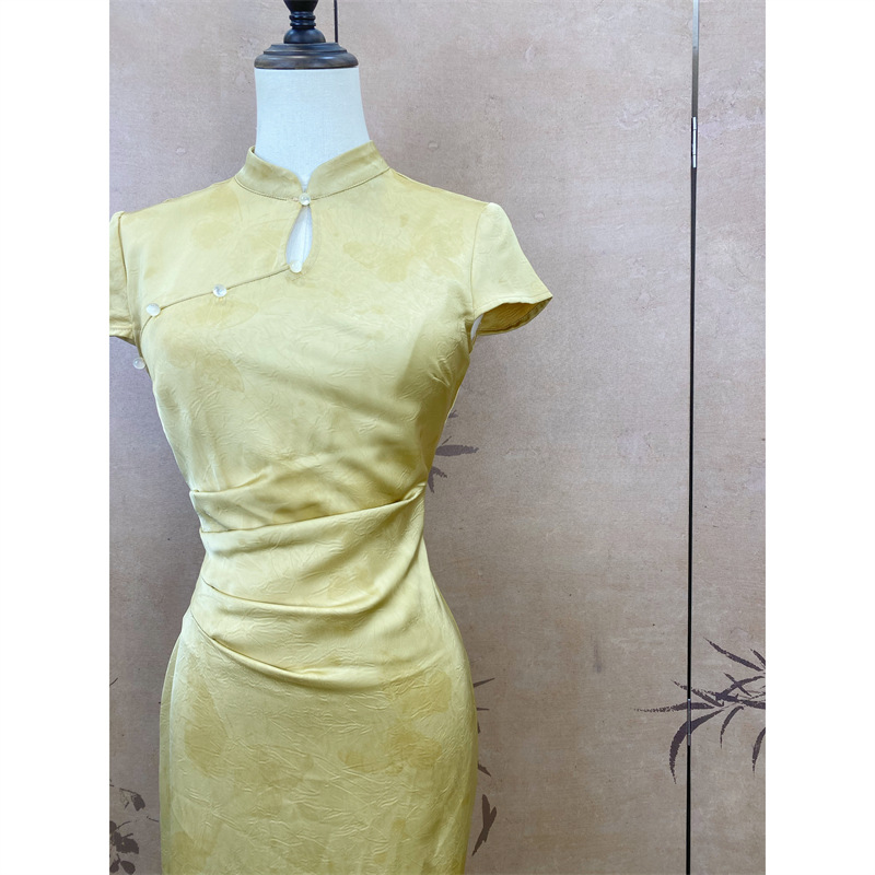 黄色のチャイナドレス2025の新しい大学入試の夏は若いタイプの少女を改良します。