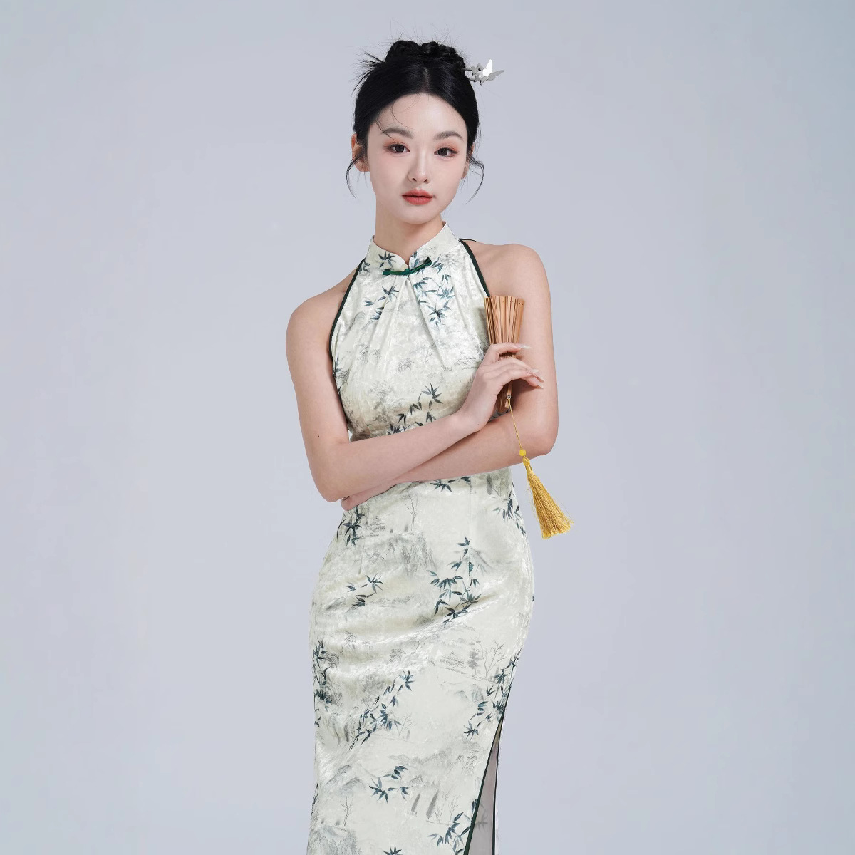 2025新型新中国式改良チャイナドレス気質絶美首掛けワンピース女性夏高級セクシーなお尻のロングスカート