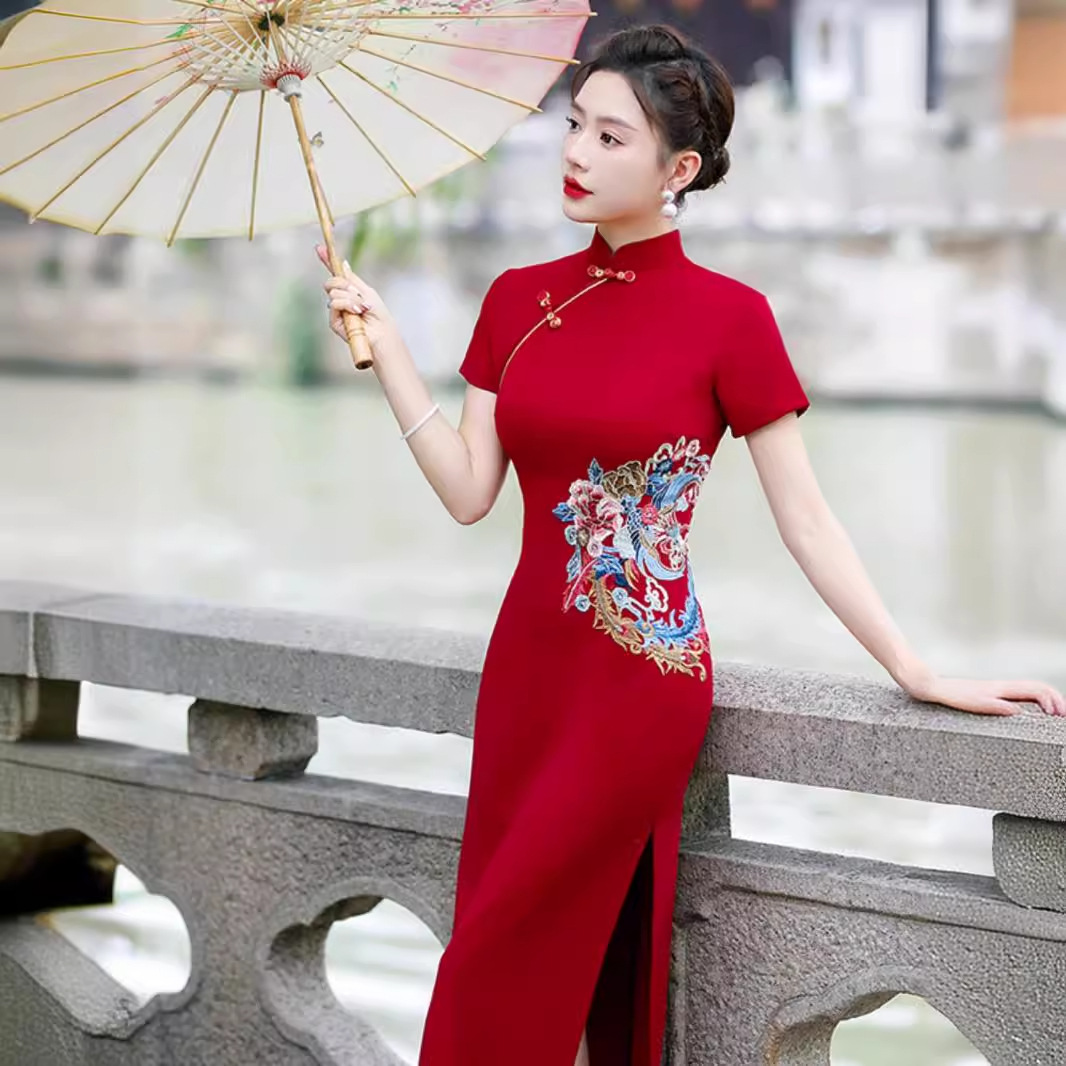 2025夏秋の新型国風改良絨毯チャイナドレス新中国式の大きいサイズの結婚披露宴