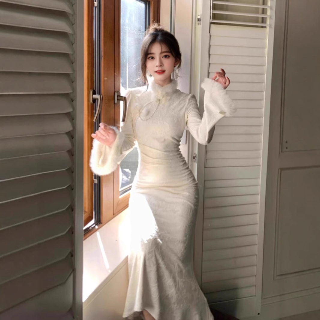 8703 #2024年の新型改良チャイナドレスのワンピース女性秋冬の若いスタイルの気質が高い