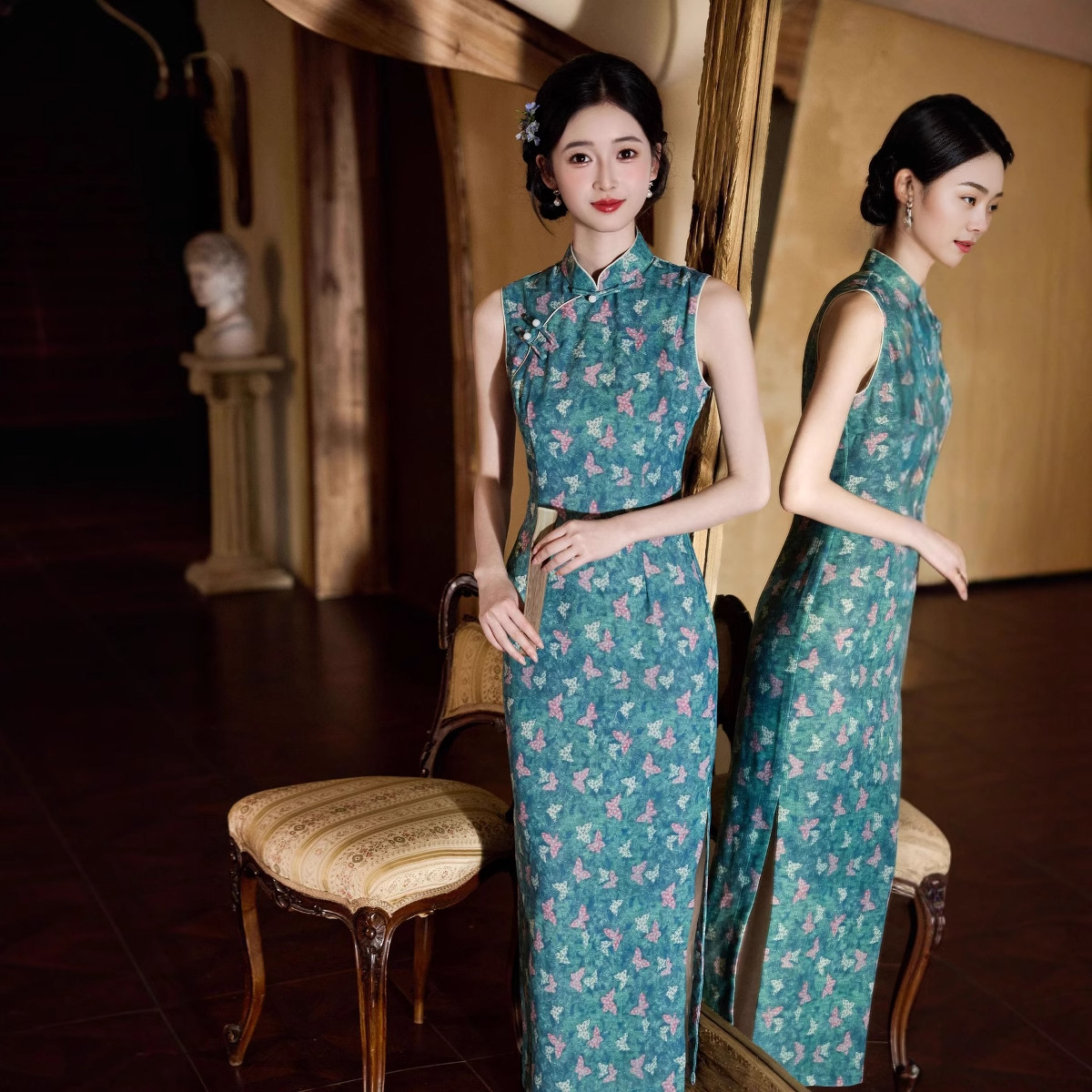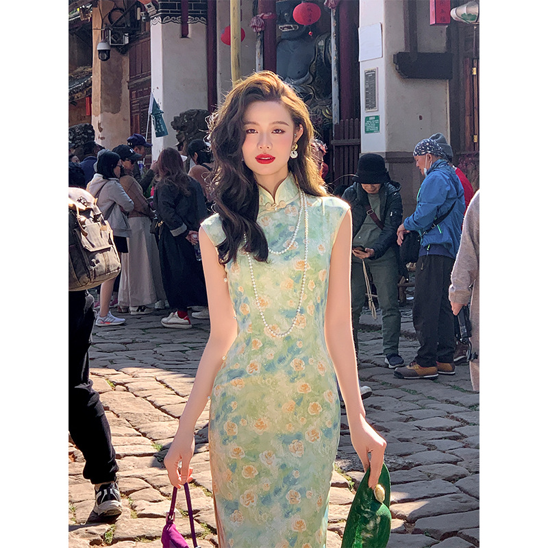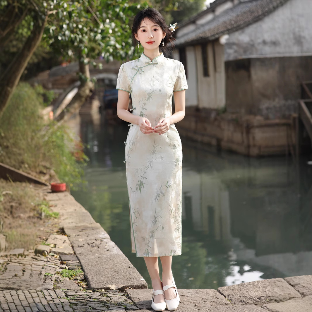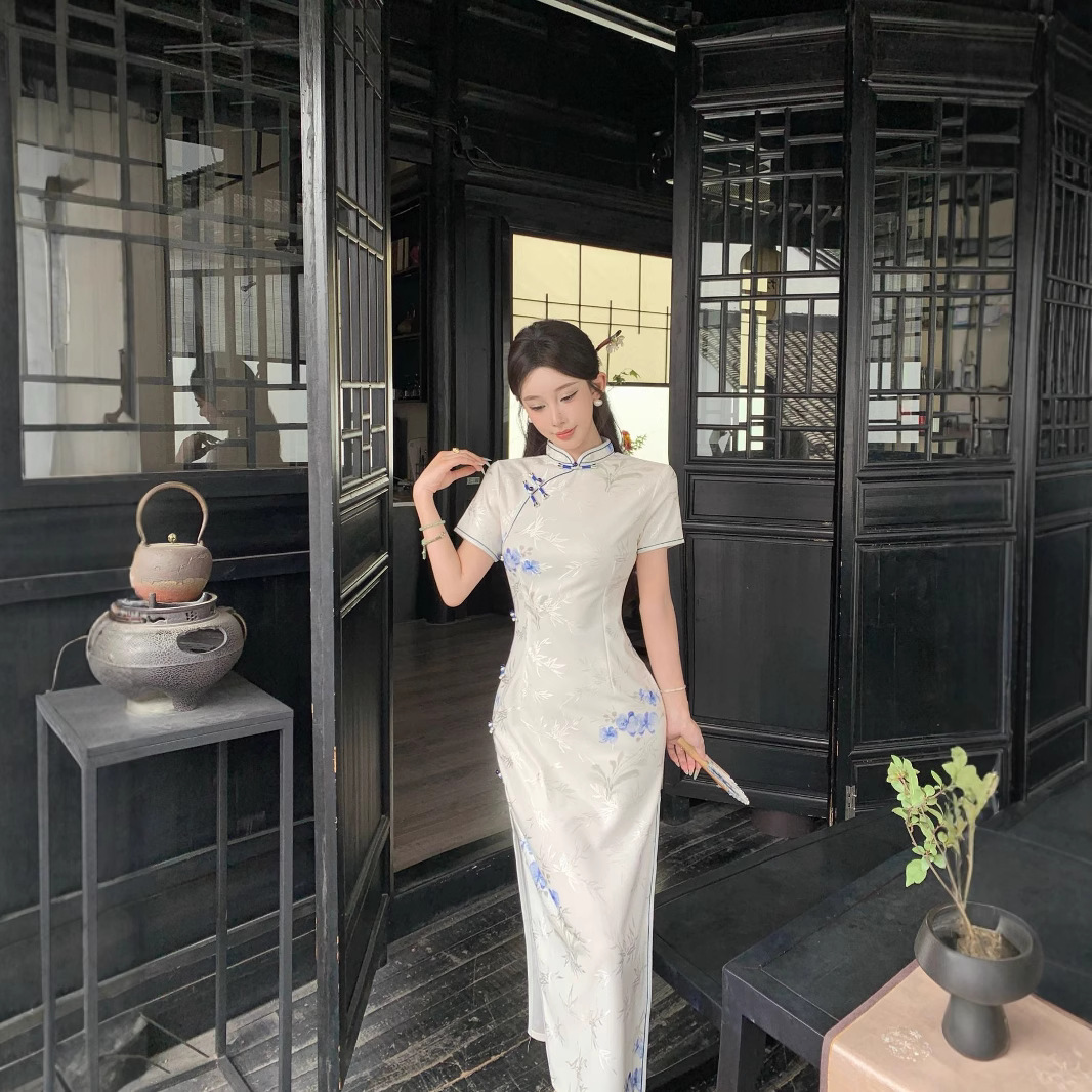 2025春夏モデルのロングタイプのチャイナドレスがスリムで、日常的にワンピースを着ることができる少女民国
