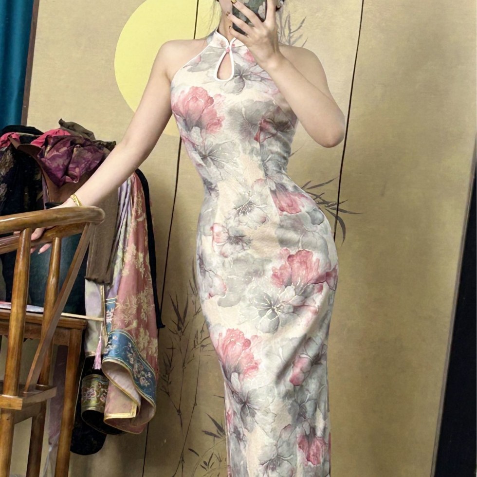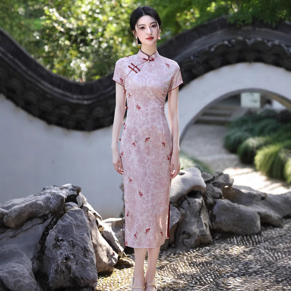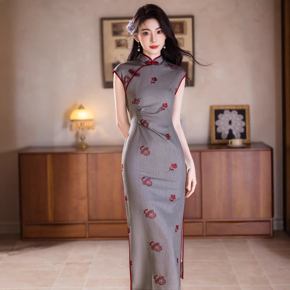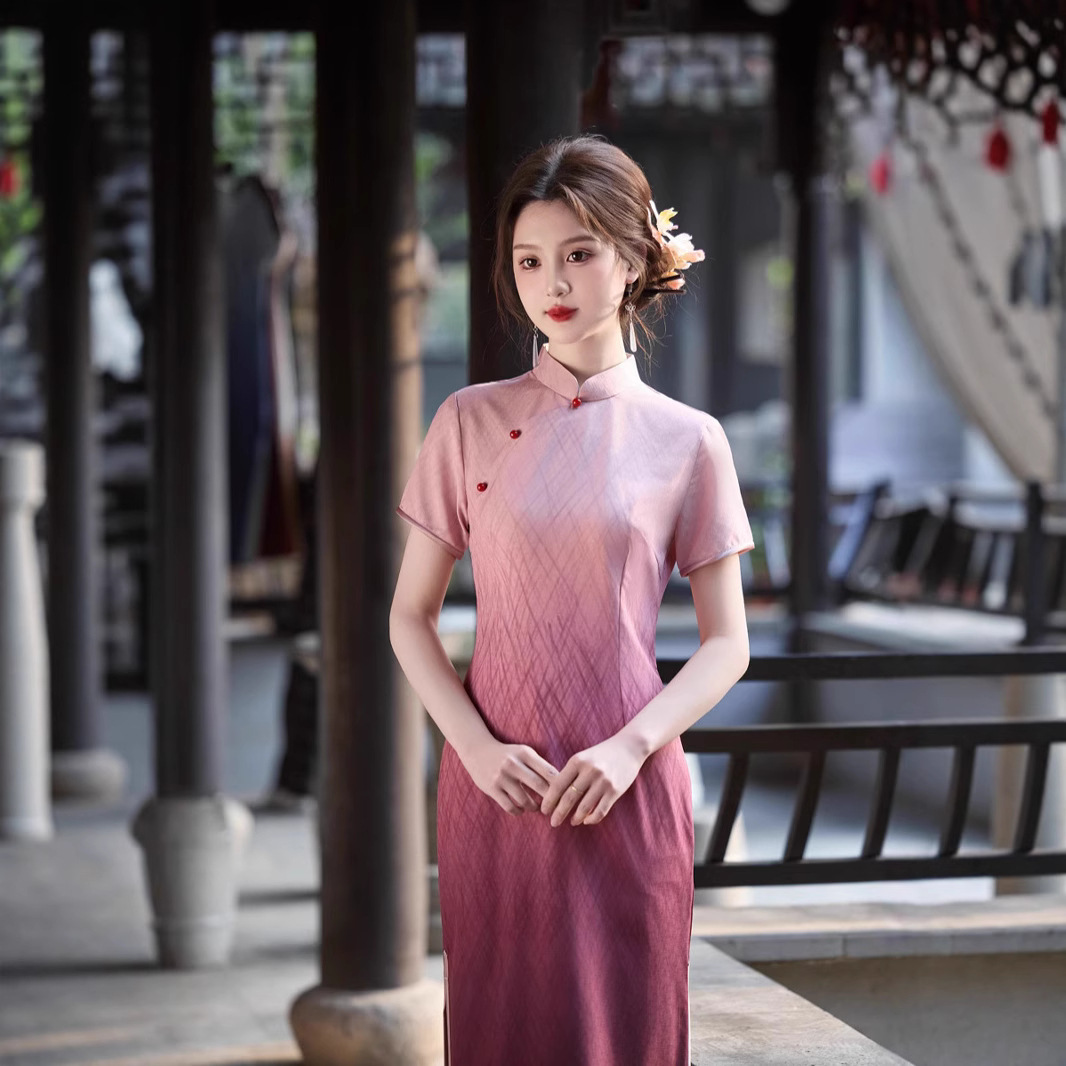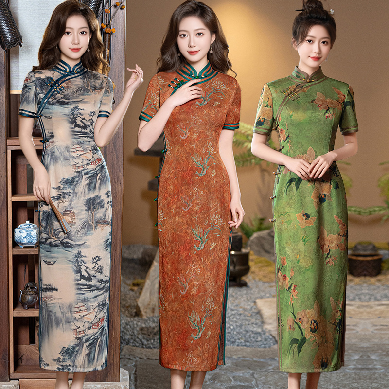 2025春夏モデルのロングタイプのチャイナドレスがスリムで、日常的にワンピースを着ることができる少女民国